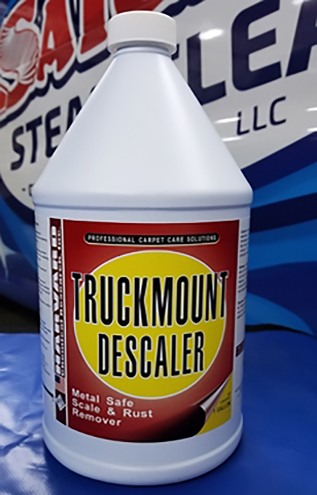 Truckmount Descaler effectively removes lime film, calcium carbonate, magnesium carbonate, iron stains, and scale from industrial equipment of carpet cleaning