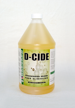 D-Cide utilizes the latest technology in odor elimination; it neutralizes odors on contact by binding, bonding, encapsulating, and absorbing a complete range of odors caused by animals, humans, mold & mildew, smoke, urine, feces, decaying organic matter, vomit, putrefaction, and much more.