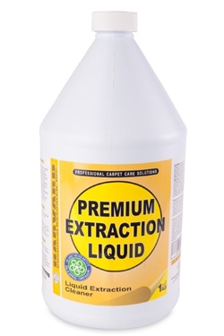 A pleasantly scented organic carpet detergent, which is designed to be equally effective in hot or cold water. This heavy-duty liquid formulation is for use in standard water extraction carpet cleaning equipment. It breaks down tough dirt and grime, and can also be used in truck-mounted equipment. Its complex surfactants and organic solvents make it effective on natural and synthetic fibers. It is highly concentrated for effective cleaning in hotels, motels, schools, hospitals, and homes. Premium Extraction Liquid has been awarded the Carpet and Rug Institute Seal of Approval. Powerful cleaners for use on residential and commercial carpet. Cuts heavy, greasy soils. Safe on stain-resistant carpet. Contains corrosion